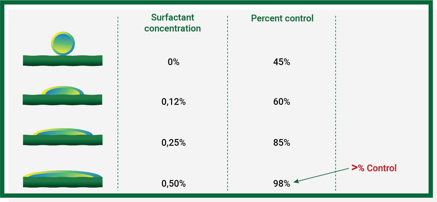 Labels may refer to “penetrating” because the larger contact surface may allow for greater penetration of the product. Greater contact with the leaf determines the “wetting” action.