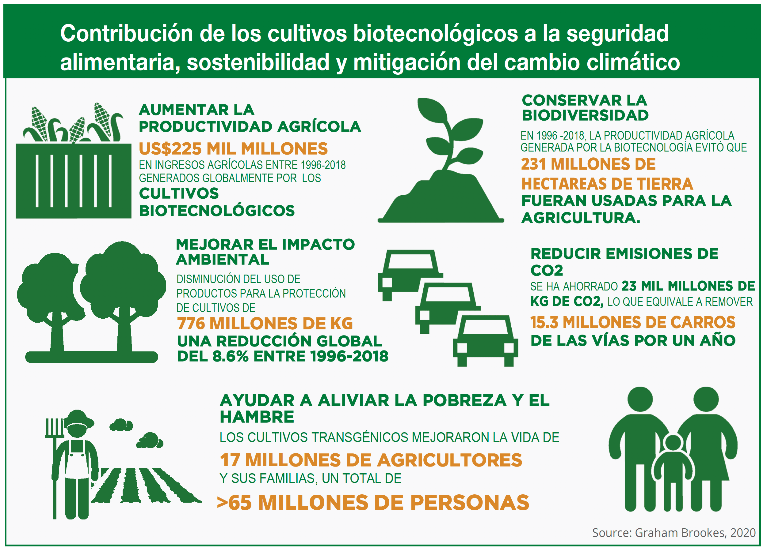 Infografía: Contribución de los cultivos biotecnológicos a la seguridad alimentaria, sostenibilidad y mitigación del cambio climático