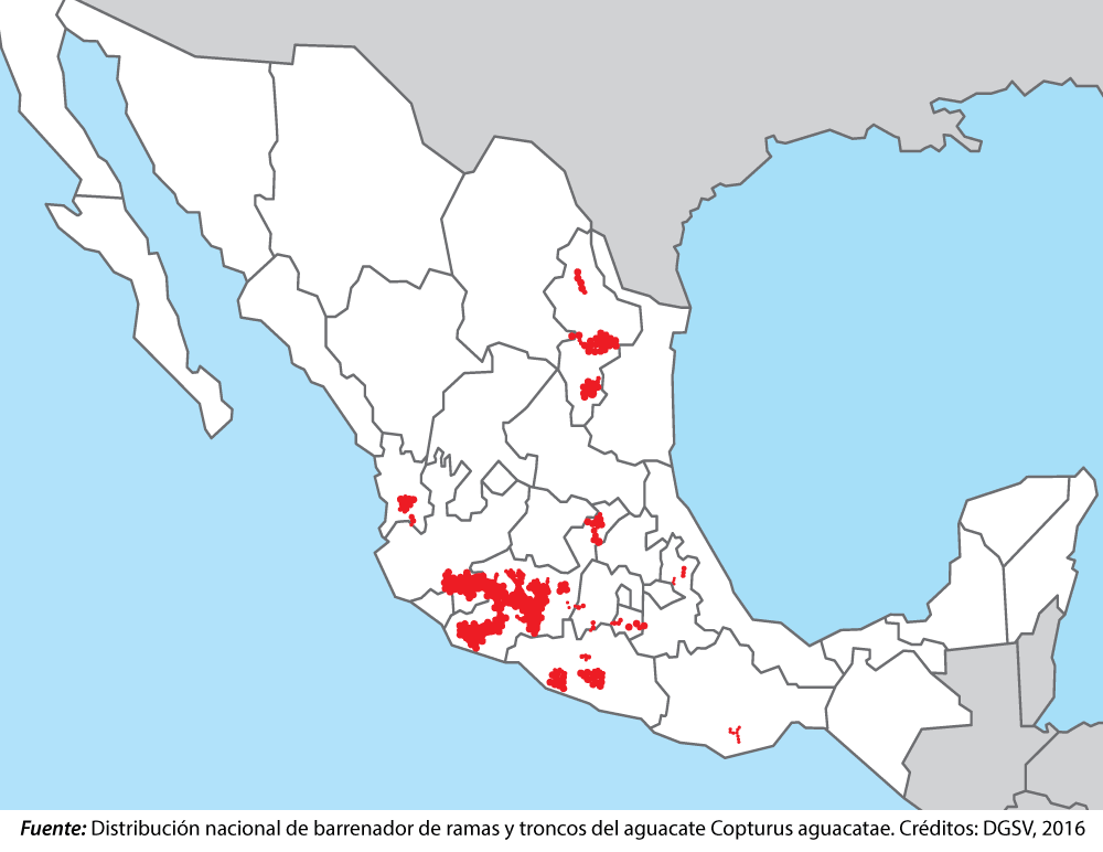 El "Barrenador de las Ramas del aguacate o palta Copturus aguacate" es una de las principales plagas de importancia económica en la producción de aguacate. Está presente en su sitio de origen México y además en el resto de las zonas aguacateras de Latinoamérica