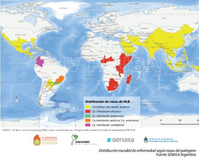 El HLB ha devastado zonas citrícolas en países de Asia, India, China, África y posteriormente se identificó en Estados Unidos, México, Latinoamérica y Caribe.
