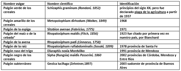 Las especies observadas atacando trigo y cereales en la Pampa Húmeda a la fecha son: